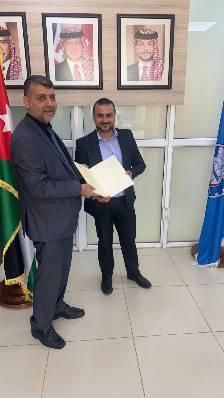 إنطلاقاً من المسيرة العلمية التي أرسى دعائمها السيد رئيس جامعة الأنبار الاستاذ الدكتور مشتاق طالب الندا المحترم وبتوجيه ودعم السيد مساعد رئيس الجامعة للشؤون العلمية الاستاذ الدكتور وسام هاشم خليل المحترم وبإشراف السيد عميد كلية العلوم الاستاذ الدكتور عصمت رمزي عبد الغفور المحترم، زار وفد من كلية العلوم – قسم علوم الحياة في جامعة الأنبار معهد تقنيات النانو في جامعة العلوم والتكنولوجيا الاردنية بتاريخ 19/9/2025 تنفيذاً لمذكرة التعاون العلمي المشترك بين الجامعتين، واستكمالاً لمتابعة إجراءات الاشراف المشترك لطلبة الدراسات العليا. وقد تكون الوفد من أ.م.د. ليث مصلح نجيب وأ.م.د. سفيان محمد شرتوح والسيد عبد الرحمن نعيم عمير، وقد التقى وفد جامعتنا مع الاستاذ الدكتور محمد علي العمري عميد المعهد والاستاذ الدكتور معتصم محمد الصمادي معاون عميد المعهد والمشرف المشارك لمناقشة تقدم خطة بحث طالبة الدكتوراه ايثار منذر عبد الوهاب وقد تم متابعة وتوضيح المسار البحثي للطالبة والوقوف على المعوقات وخطط معالجتها. وفي ختام الزيارة ونيابة عن السيد رئيس الجامعة سلم الوفد شهادة تقديرية للسيد عميد المعهد تقديرا وعرفانا للجهود المبذوله في دعم التعاون العلمي