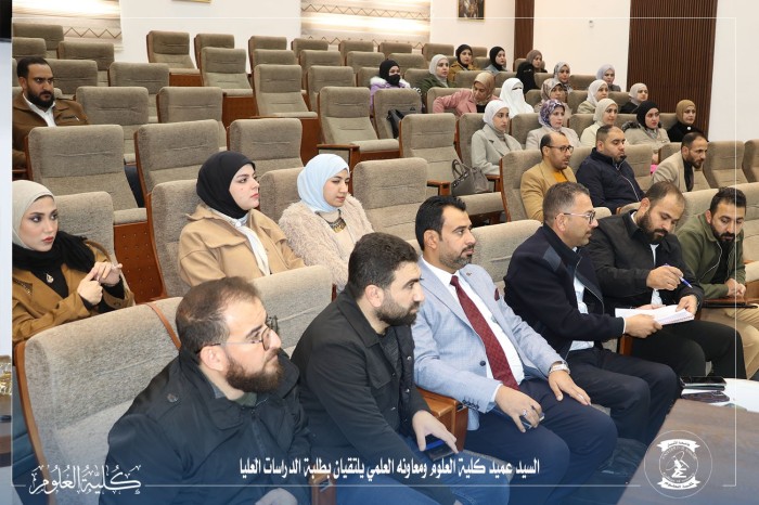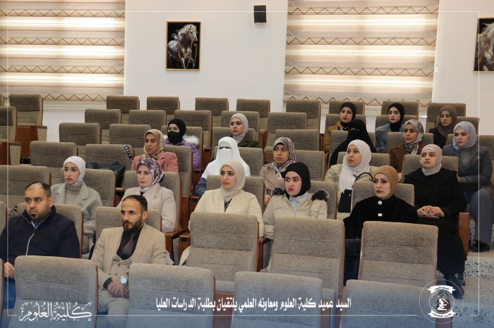 في حوار مفتوح لتعزيز المسيرة البحثية.. السيد عميد كلية العلوم ومعاونه العلمي يلتقيان بطلبة الدراسات العليا