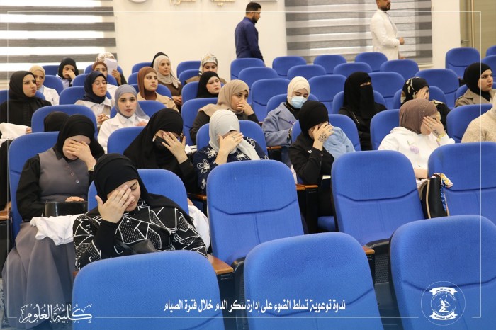 حرصاً من عمادة كلية العلوم على نشر الوعي الصحي وتثقيف المجتمع الجامعي، نظمت وحدة الإرشاد النفسي الجامعي، اليوم الثلاثاء الموافق 10 آذار 2026، ندوة علمية وتوعوية هامة حملت عنوان (تنظيم مستوى سكر الدم أثناء فترة الصيام)، وذلك على رحاب قاعة جابر بن حيان.